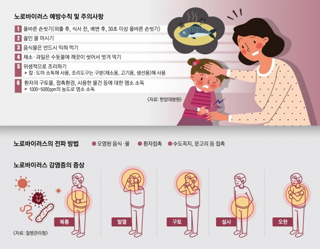 노로바이러스 감염을 예방하기 위해서는 다음과 같은 방법들이 있습니다: